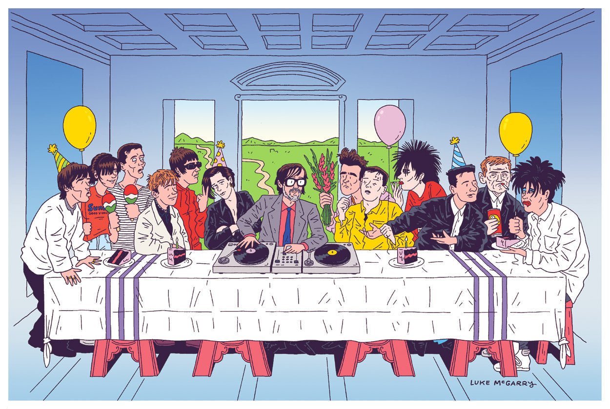 Limited edition print of the Britpop vs Post-Punk last supper. 12 x 18″ on 100lb cover cardstock. Jarvis bless us, everyone.