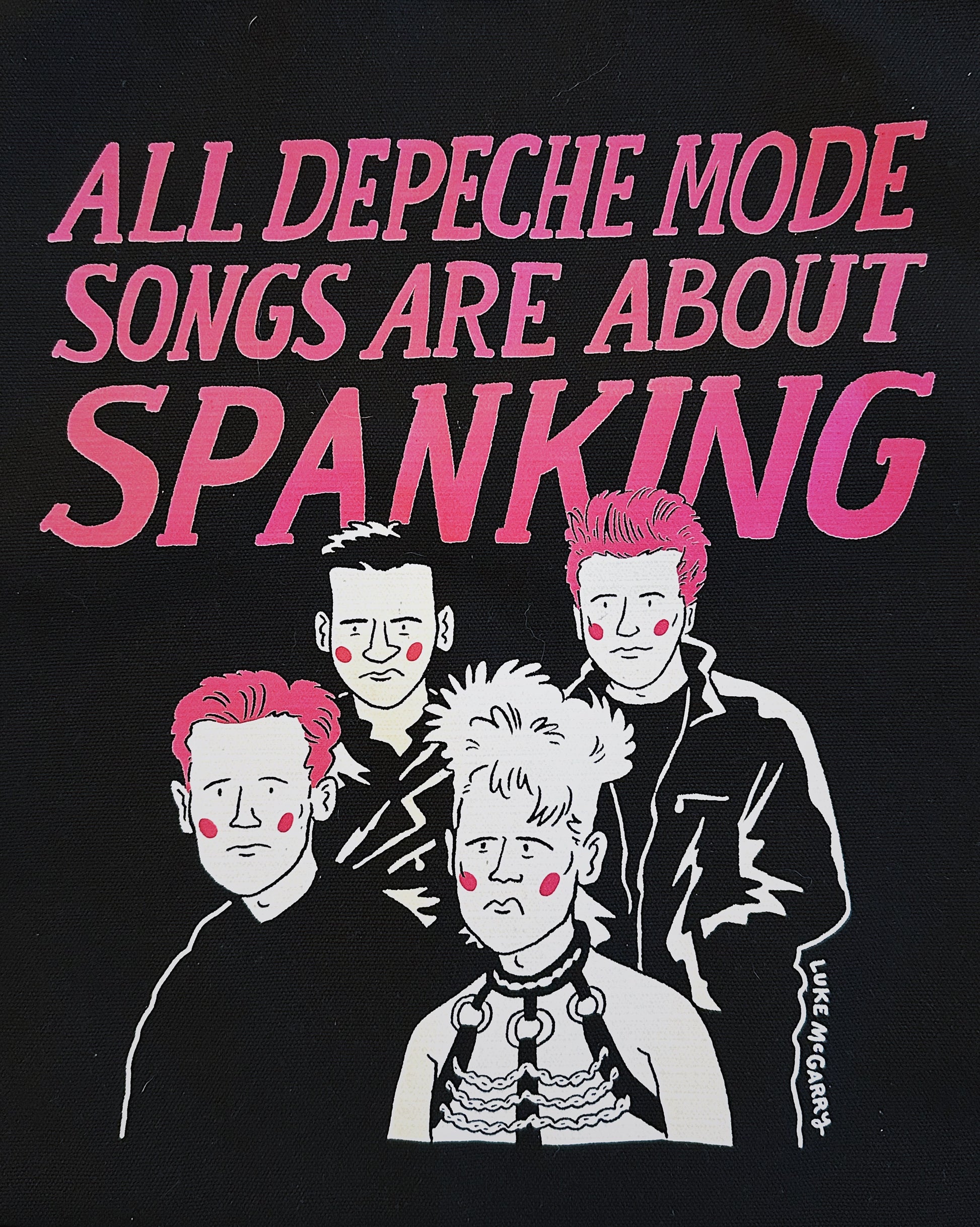 All Depeche Mode songs are about spanking — If you know you know, and now you can let everyone else know as you carry around this 13.4x15″ cotton canvas tote bag featuring a 2-color, 2-sided silkscreen print.